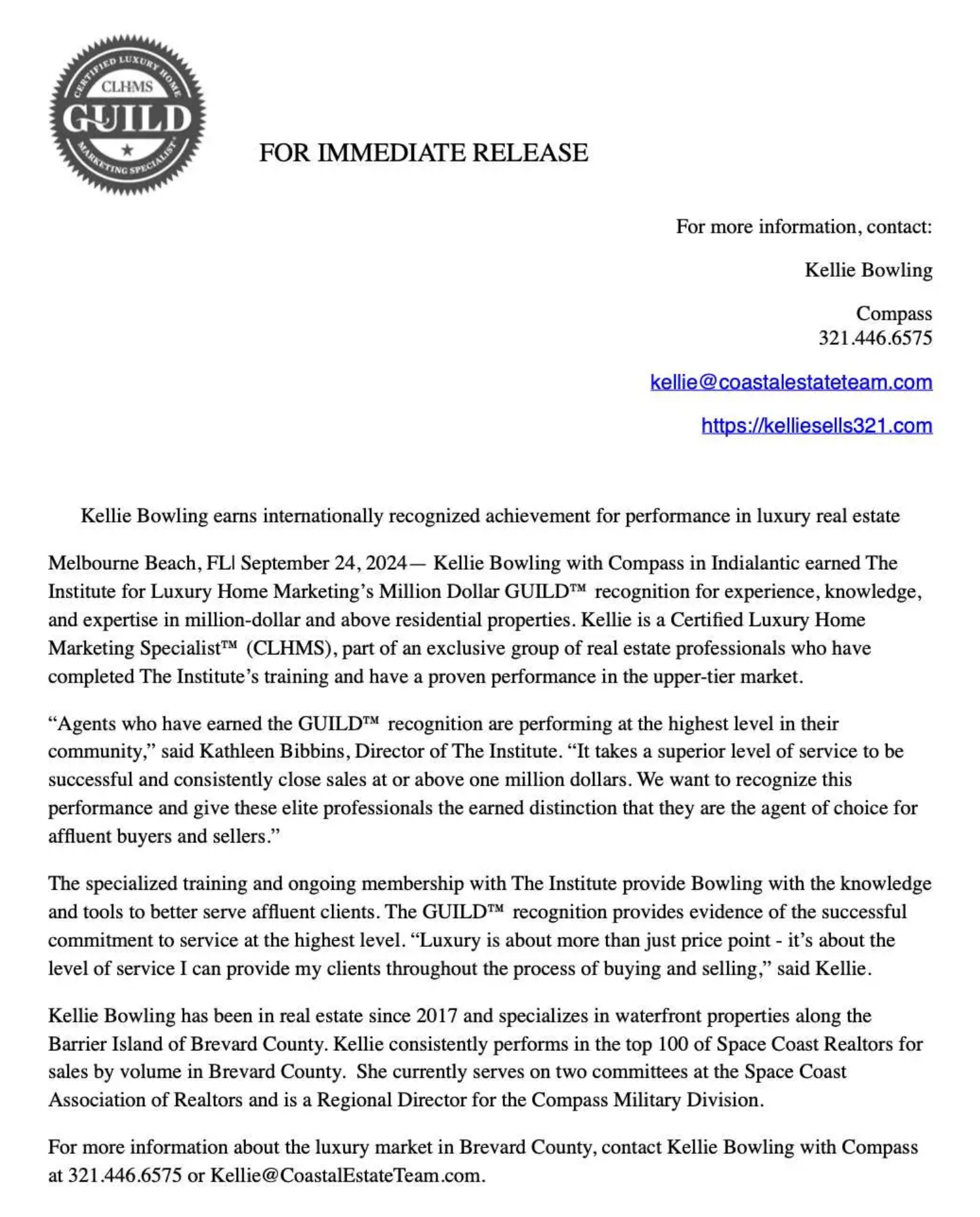 Kellie Bowling earns internationally recognized achievement for performance in luxury real estate